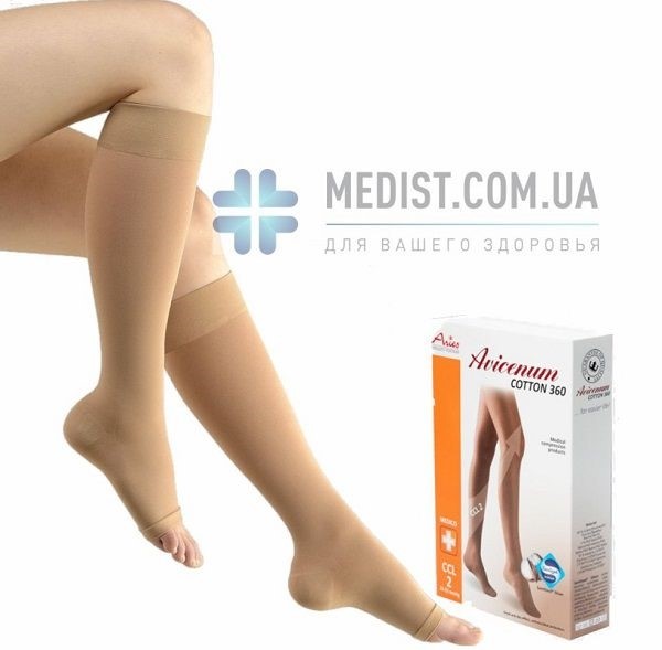 60% ХЛОПОК Компрессионные гольфы от варикоза Aries Avicenum 360 второй класс компрессии (ccl2) С ОТКРЫТЫМ НОСКОМ (мыском) для женщин и мужчин, бежевые