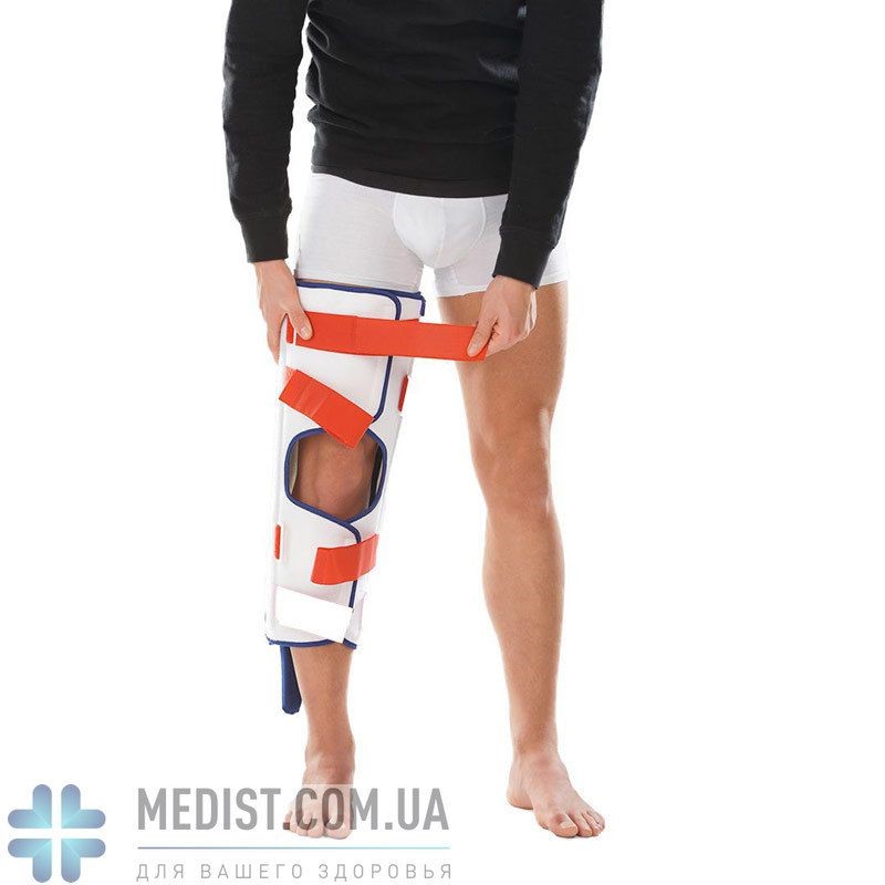 Предназначена для иммобилизации коленного сустава в функционально выгодном положении под углом 180°