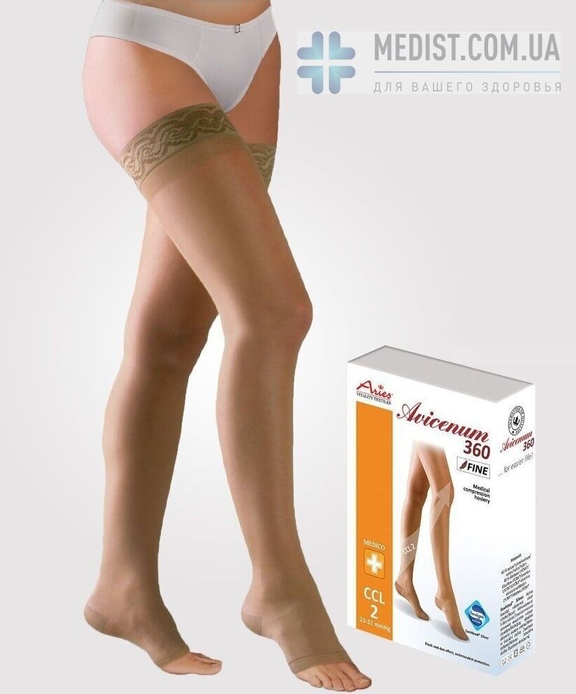 ТОНКИЕ ЖЕНСКИЕ компрессионные чулки от варикоза Aries Avicenum 360 fine второй класс компрессии (ccl2) С ЗАКРЫТЫМ НОСКОМ (мыском) КРУЖЕВНАЯ РЕЗИНКА, бежевые